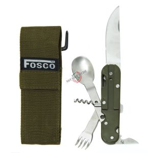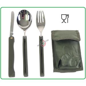 13. Set Posate Accaio Richiudibili con Custodia Campo Militari Survival Verdi Art.33573