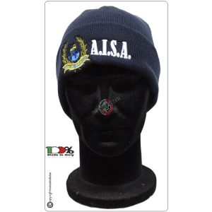 8. Berretto Lana - Papalina - Blu Con Logo Ricamato AISA Art.NSD-A-LOG