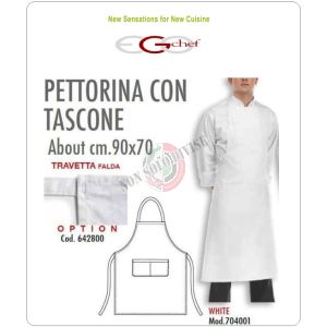 5. Grembiule Cucina Pettorina con Tascone cm 90x70 Bianco Art.6103001N
