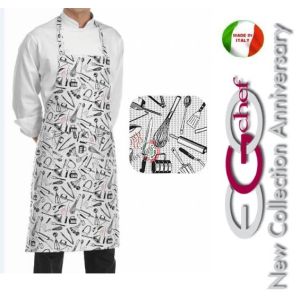 21. Grembiule Cucina Pettorina con Tascone cm 90x70 Dino Ego Chef Italia Art. 6103133A
