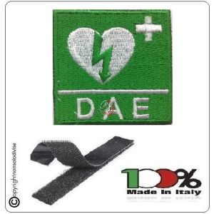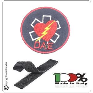 17. Patch Toppa Ricamata Bianca con Velcro D.A.E. OPERATORE BLS-D cm 10.00 DAE Art.DAE-52